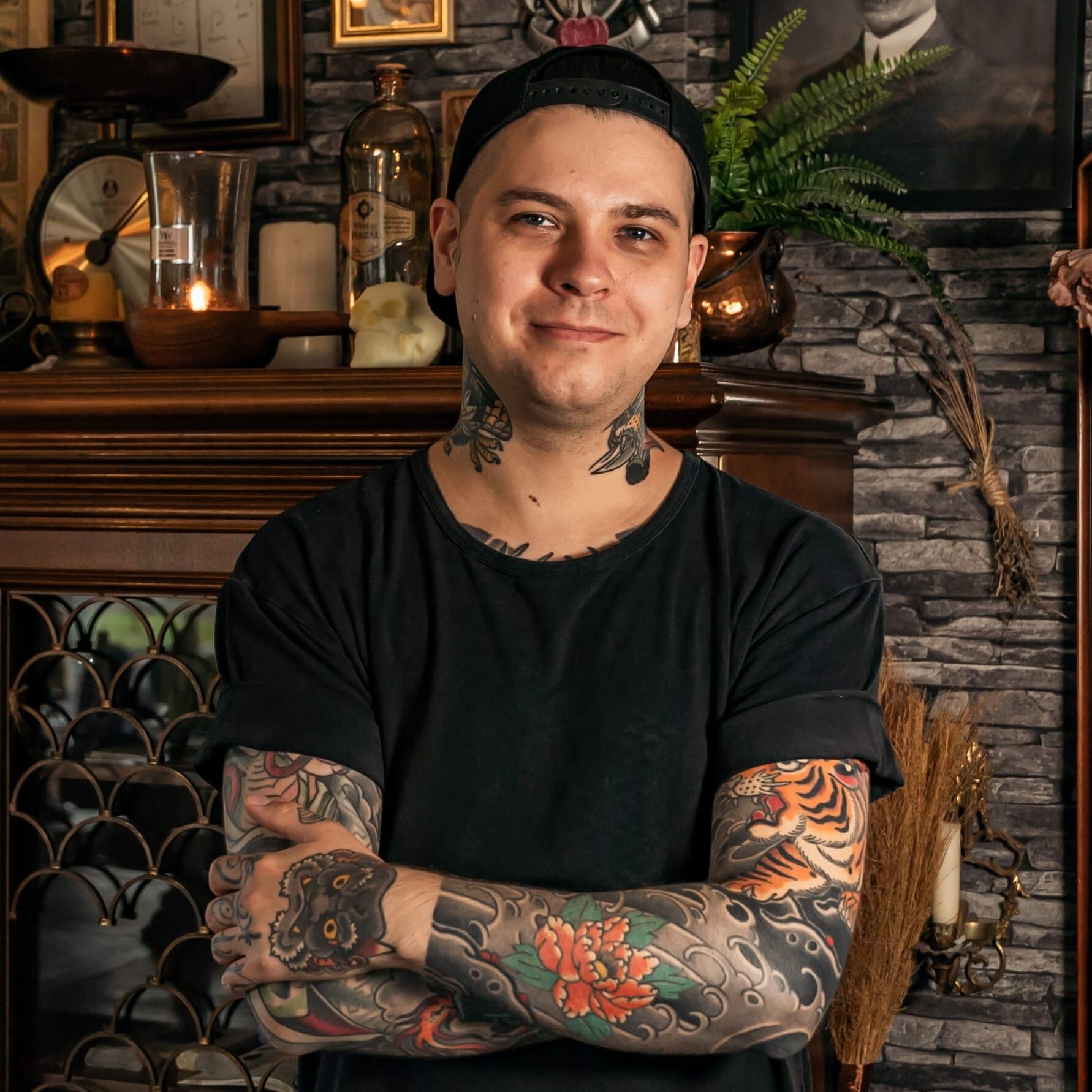 2012 bekam ich mit 21 Jahren meine erste Tätowierung von Clemens Hahn. Ein Jahr später begann ich meinen japanischen Rücken mit Andreas Coenen, was meine Leidenschaft für das Tätowieren entfachte. Mein Stil entspringt meiner Faszination für klassisch japanisches und westliches Tätowieren, kombiniert mit meiner Leidenschaft für Mangas, Animes, Videospiele und Folklore.