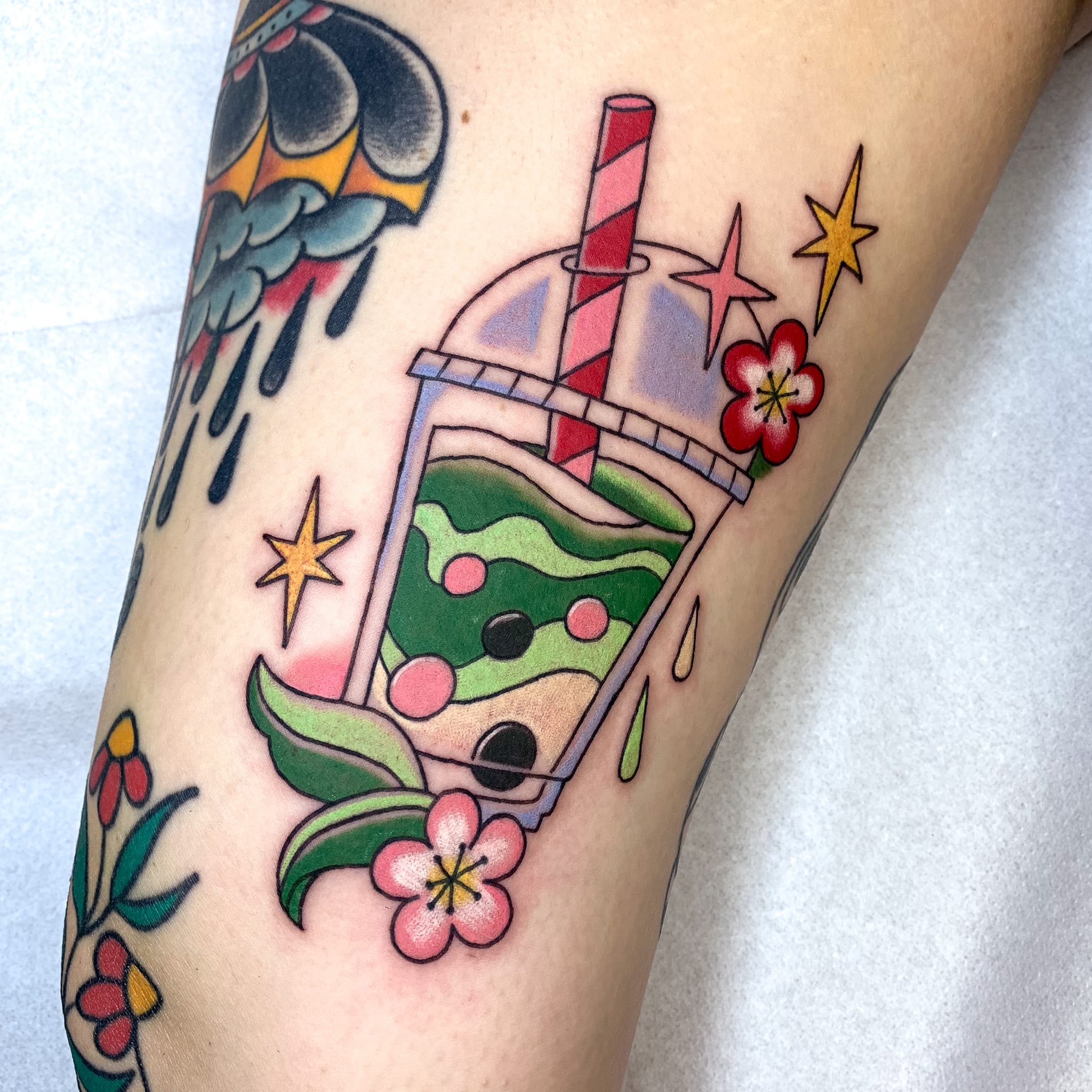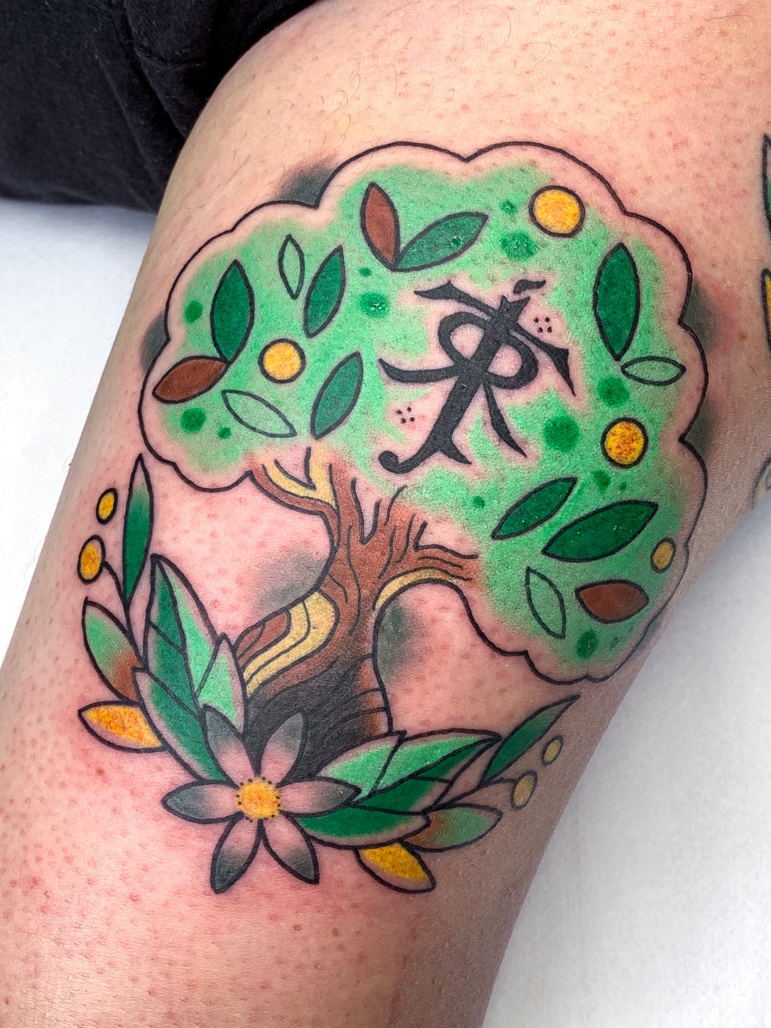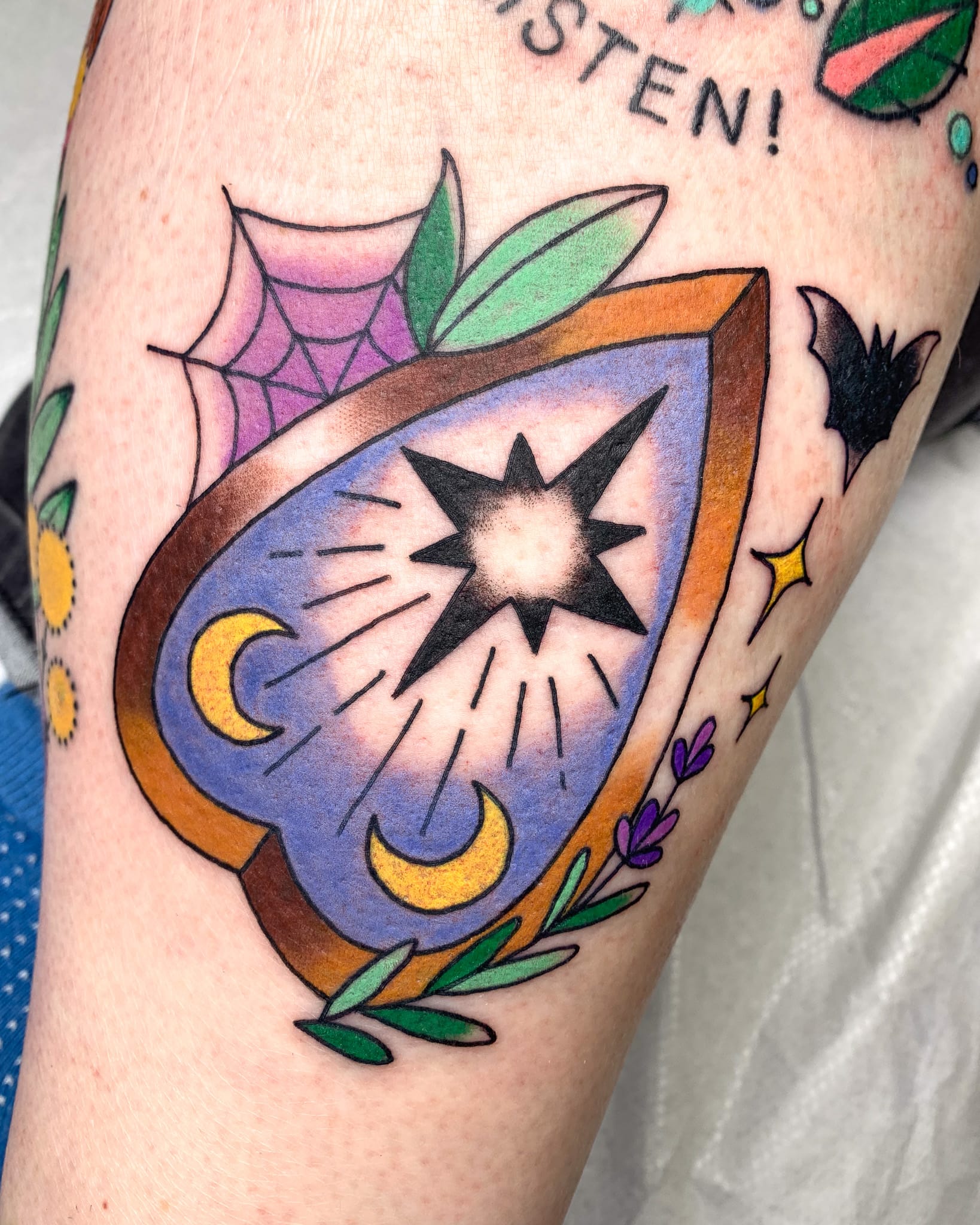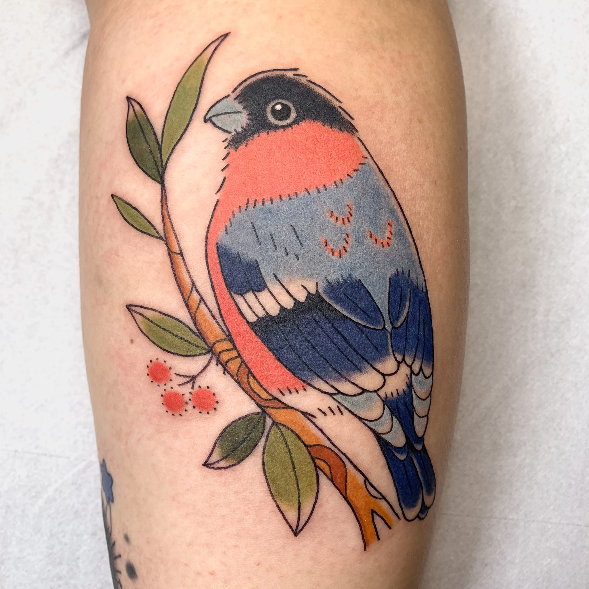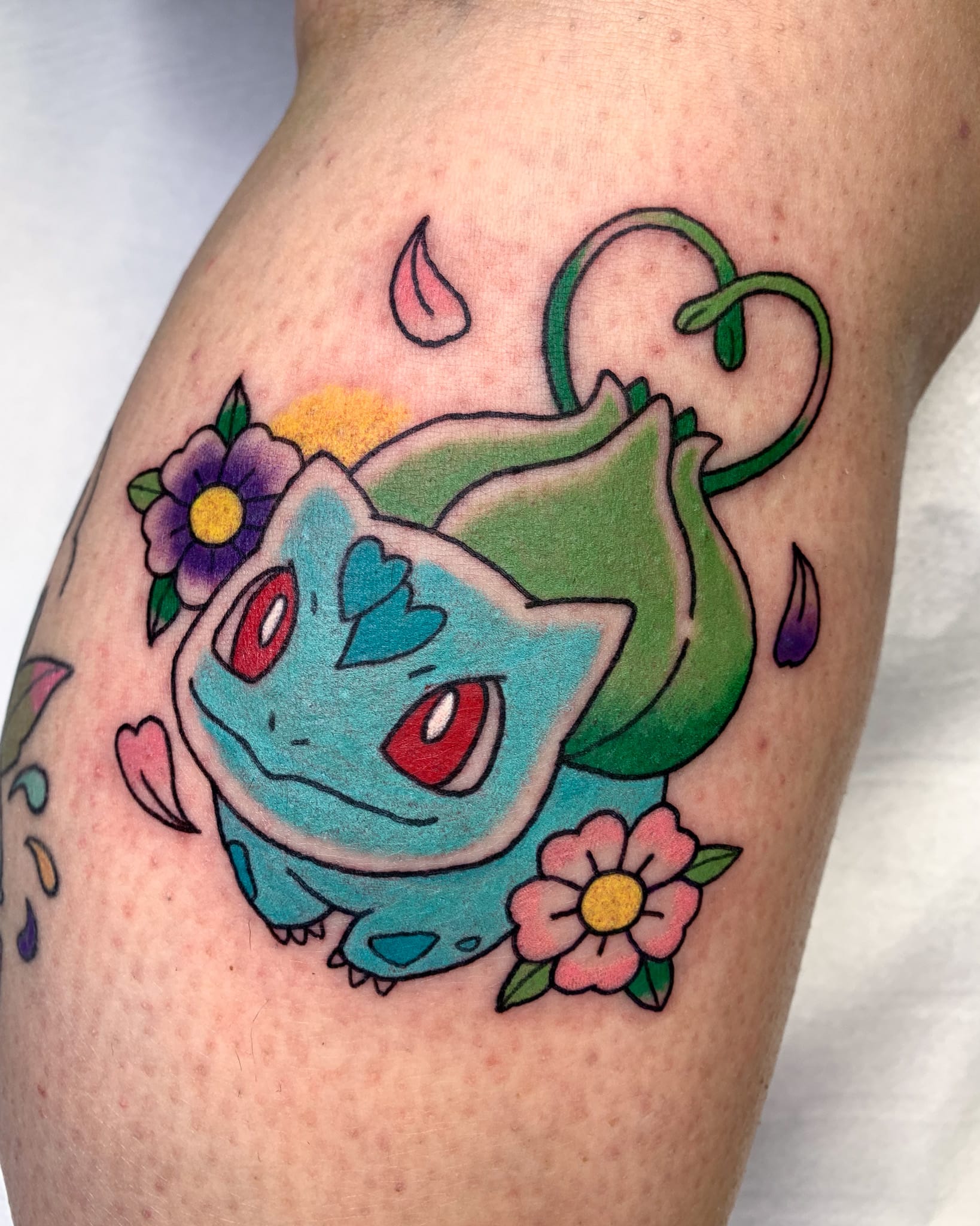 Die Faszination für farbenfrohe Tattoos begleitet mich seit meinem 18. Lebensjahr und es war nur eine Frage der Zeit, bis ich diese Leidenschaft auch beruflich verfolge. Als Linoldruckkünstlerin habe ich 2018 den Einstieg in die kreative Selbstständigkeit gewagt, das Tätowieren war der nächste, ganz natürliche Schritt. Besonders gern entwerfe ich bunte, florale und verspielte Motive, inspiriert von Popkultur, Natur und einer Prise Magie.