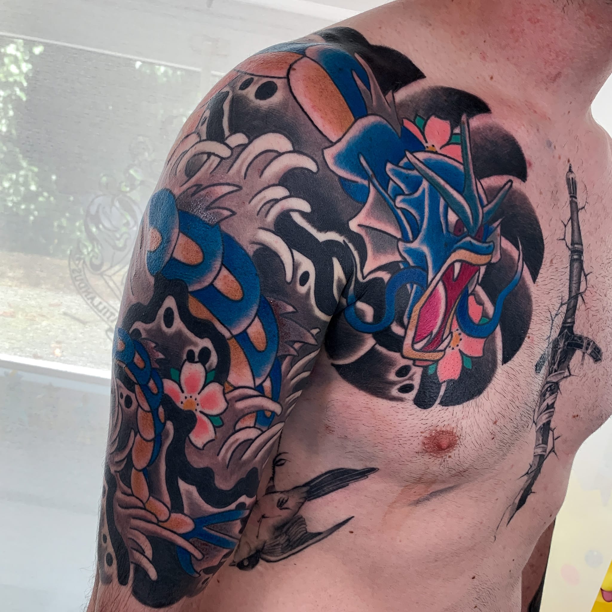 2012 bekam ich mit 21 Jahren meine erste Tätowierung von Clemens Hahn. Ein Jahr später begann ich meinen japanischen Rücken mit Andreas Coenen, was meine Leidenschaft für das Tätowieren entfachte. Mein Stil entspringt meiner Faszination für klassisch japanisches und westliches Tätowieren, kombiniert mit meiner Leidenschaft für Mangas, Animes, Videospiele und Folklore.